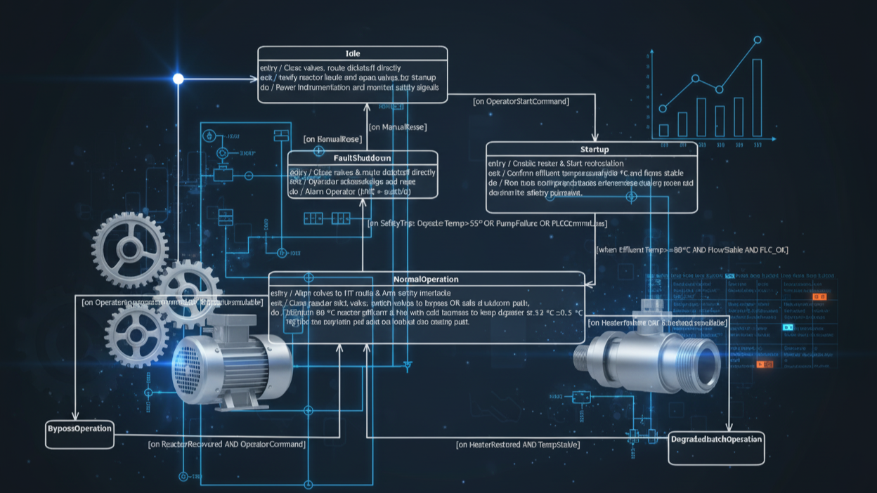 SysML Modeling: We use SysML to create detailed models, such as State Machine models, to visualize and validate system behavior before a single piece of equipment is built.